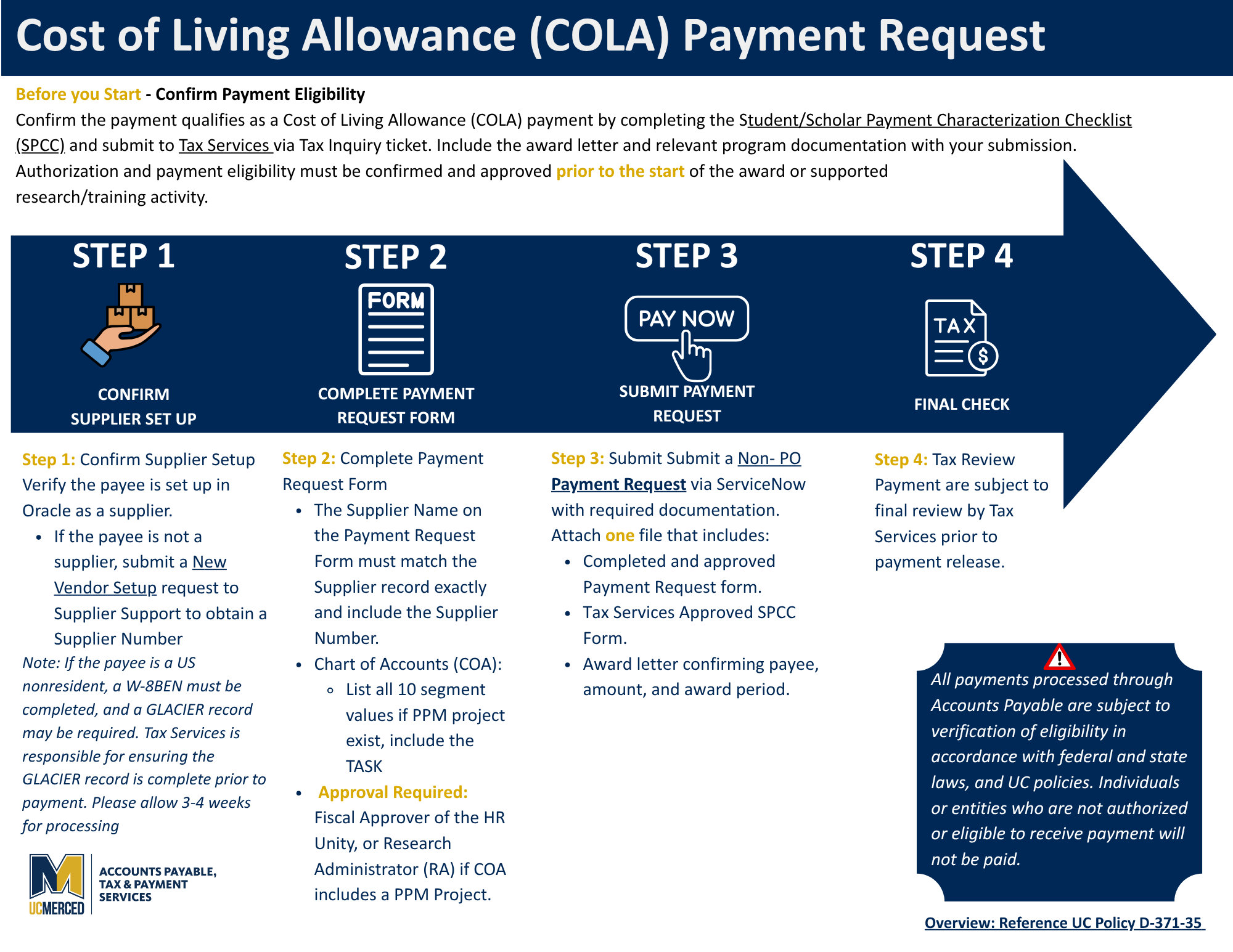 UC Merced –Cost of Living Allowance (COLA) Payment Checklist